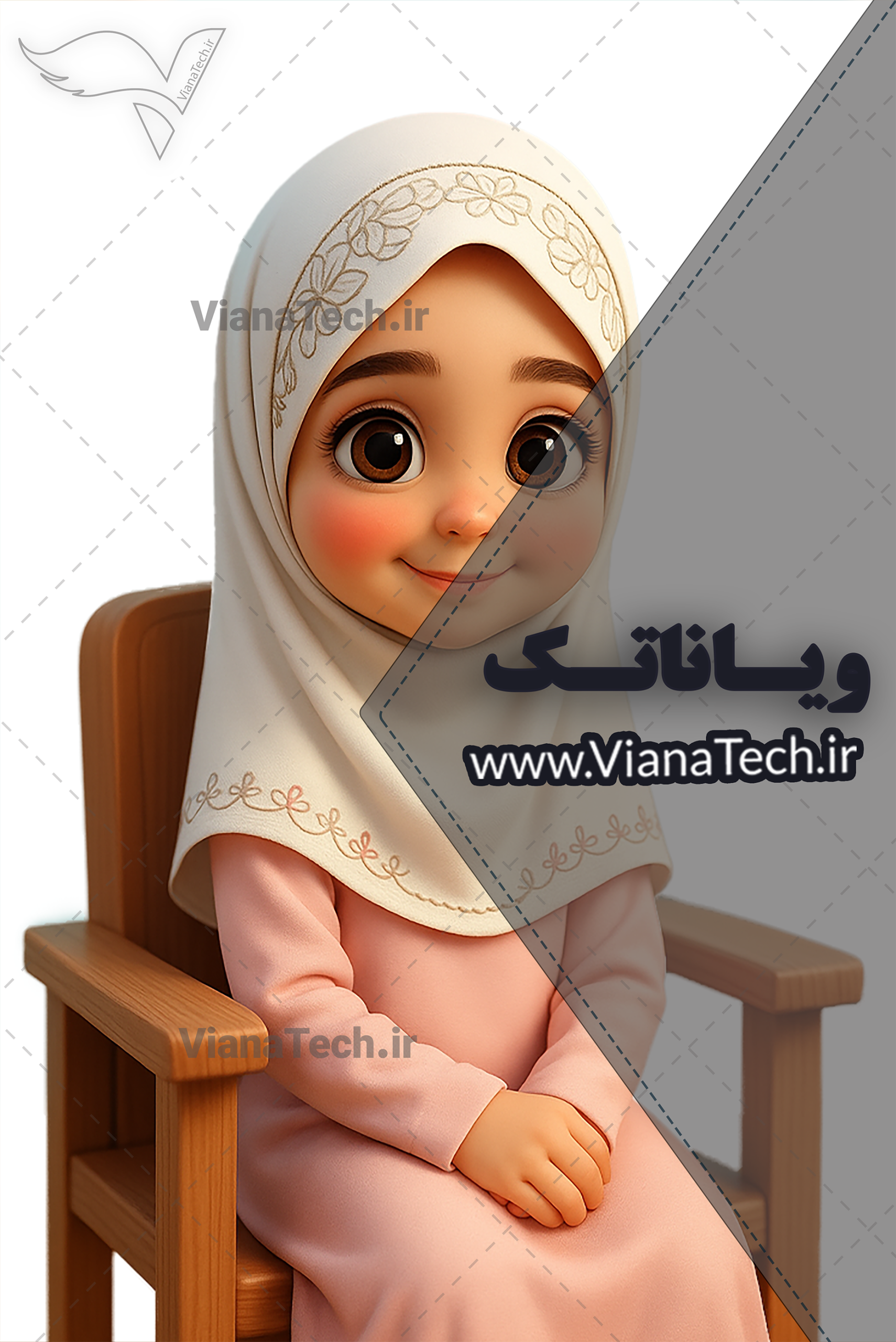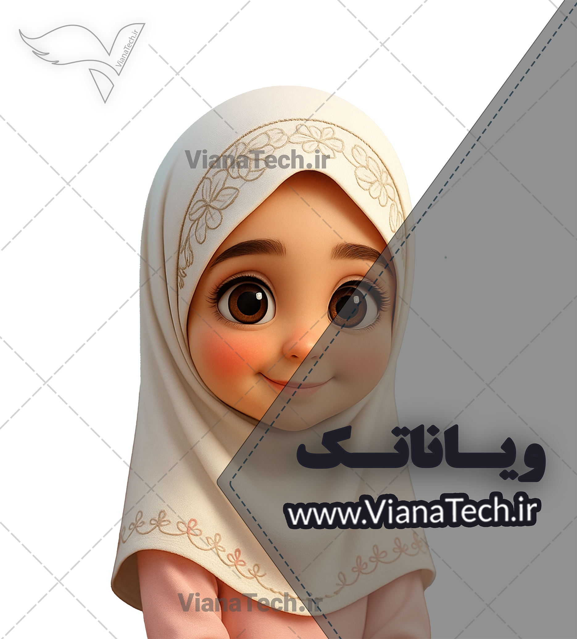 تصویر دانش آموز با حجاب شامل کاراکتری جذاب و خلاقانه است که با فرمت PNG توسط طراحان ویاناتک طراحی شده است.
